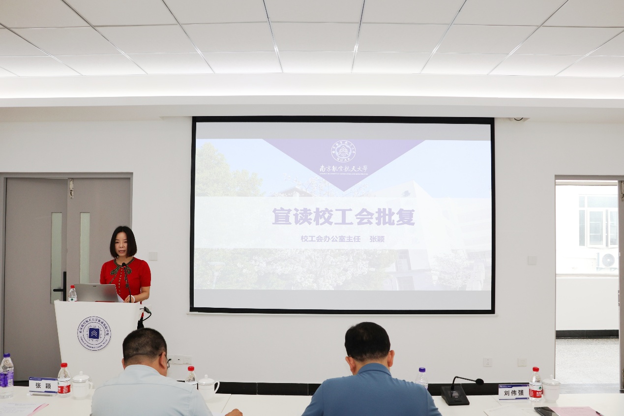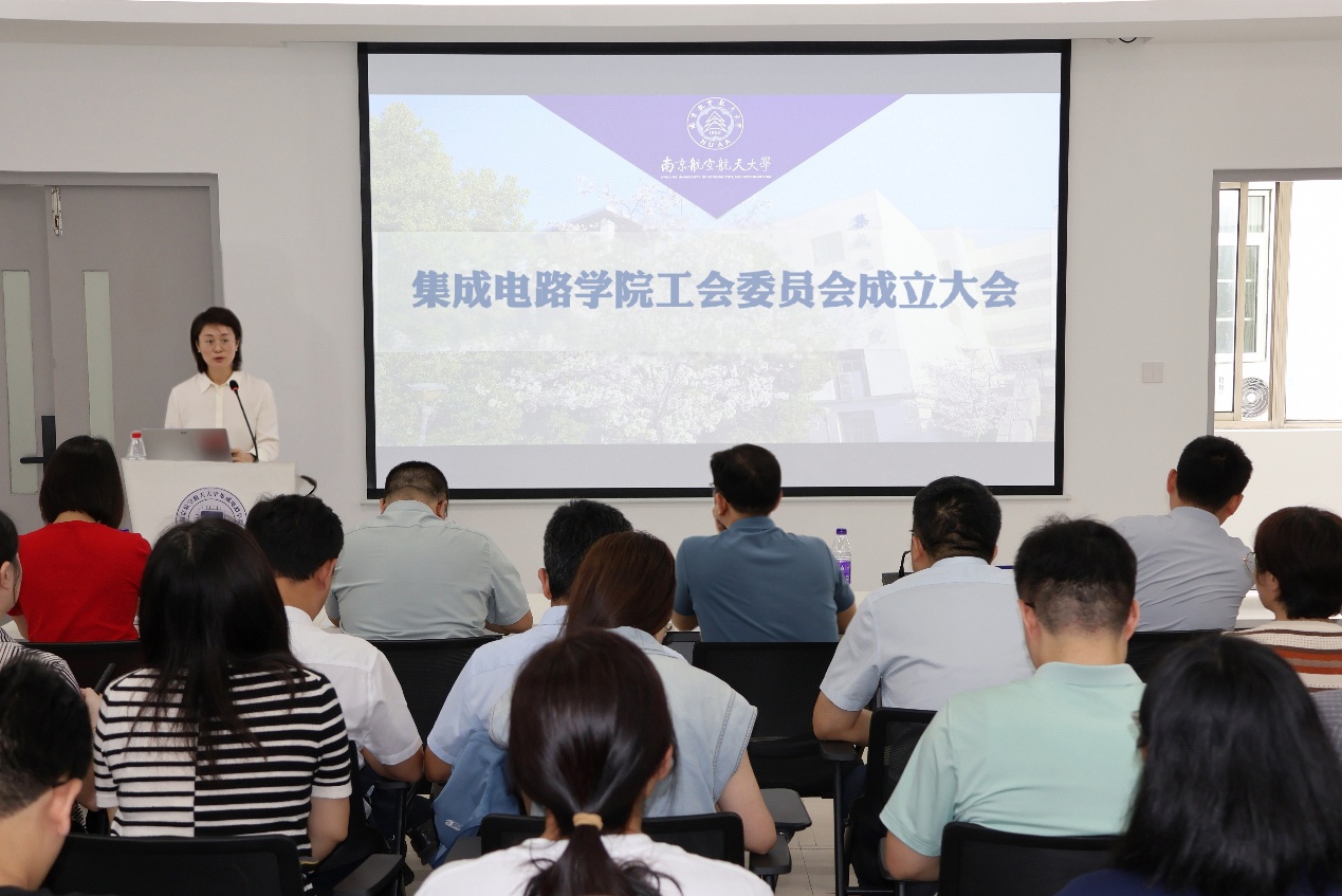 大会在庄重的国歌声中开幕。张颖宣读了《南京航空航天大学工会委员会关于集成电路学院成立工会委员会并召开成立大会请示的批复》。