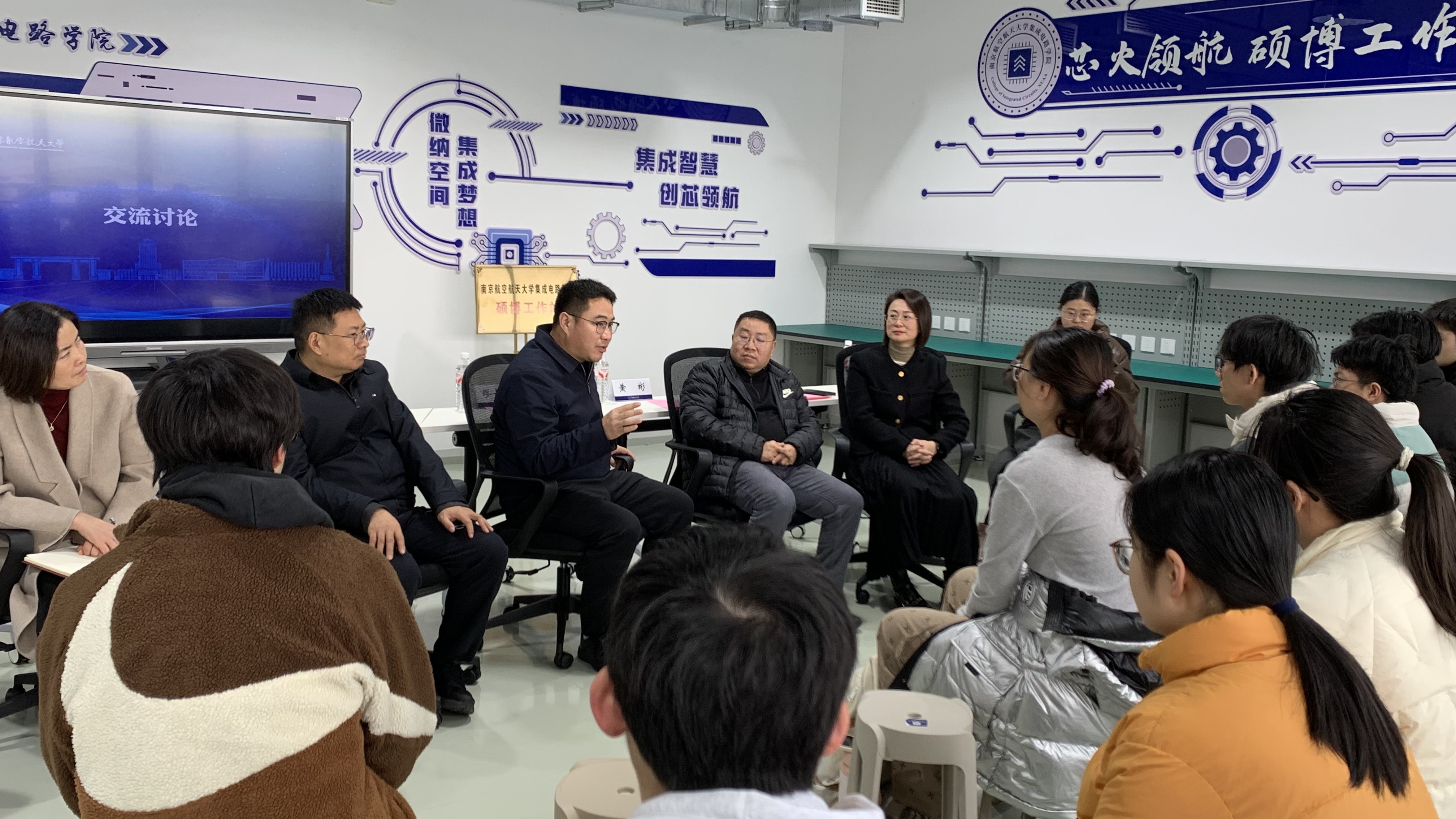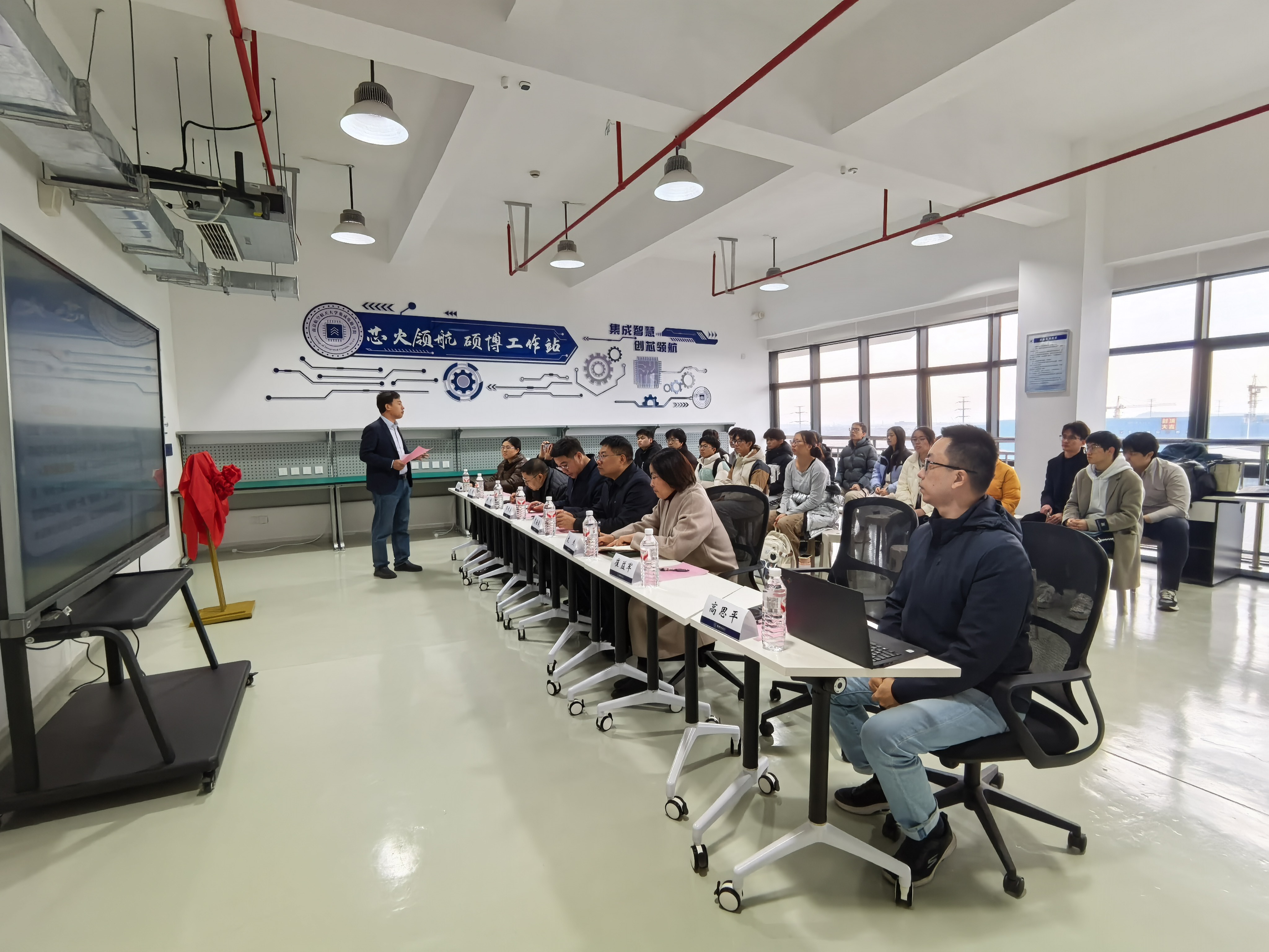 2025年12月16日,集成电路学院在天目湖校区明慧楼C座704成功举办“芯火领航硕博工作站”揭牌仪式暨首次学术交流活动。天目湖校区党委书记、管委会主任缪长宗,牧星学院党委书记贡海俊,集成电路学院党委书记黄彬,牧星学院党委副书记、致微书院执行院长文杰,集成电路学院党委副书记周聚,集成电路学院副院长、致微书院副院长崔益军及师生代表参加。活动由崔益军主持。