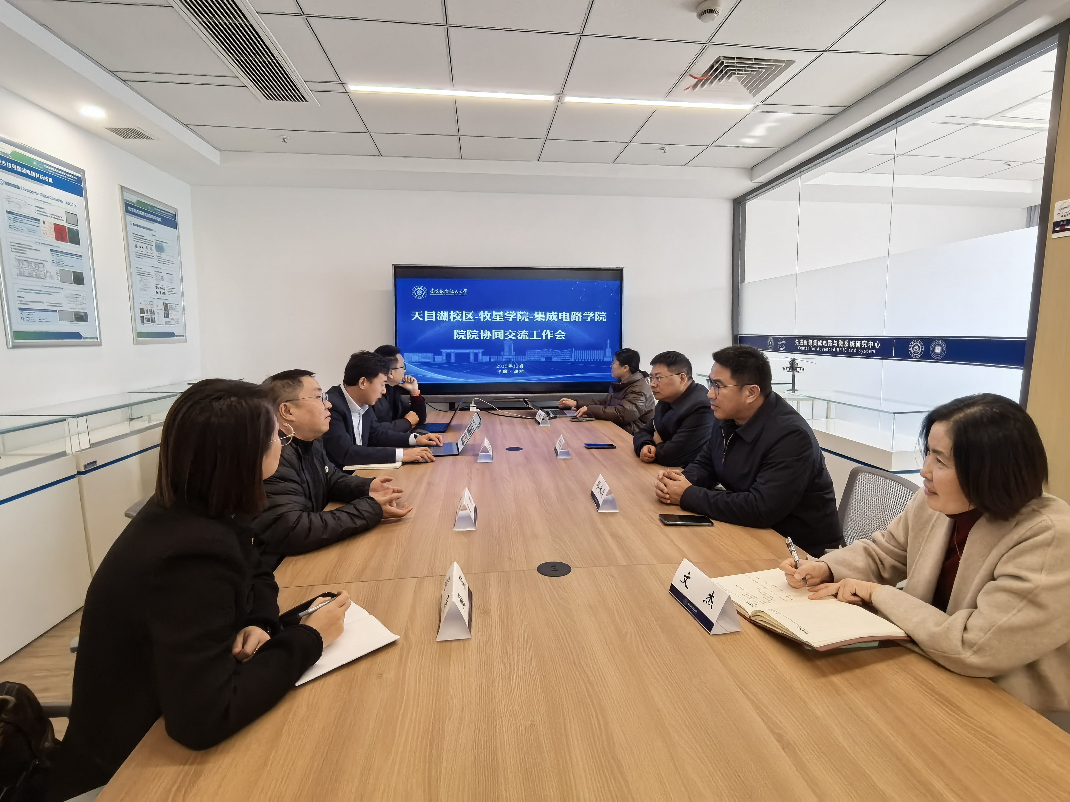 为进一步深化协同,天目湖校区、牧星学院与集成电路学院三方在明慧楼C座804召开协同交流工作会。会议聚焦天目湖校区创新平台规划,重点围绕微纳加工实验室、集成电路测试中心等项目的论证与建设展开研讨,旨在持续拓展硬件支撑能力,打造“基础研究、技术攻关、产业应用”全链条创新载体。与会各方就资源共享、场地集约化使用、高水平人才引进与平台宣传等议题进行了深入交流,共同谋划推动学院与平台高质量发展。