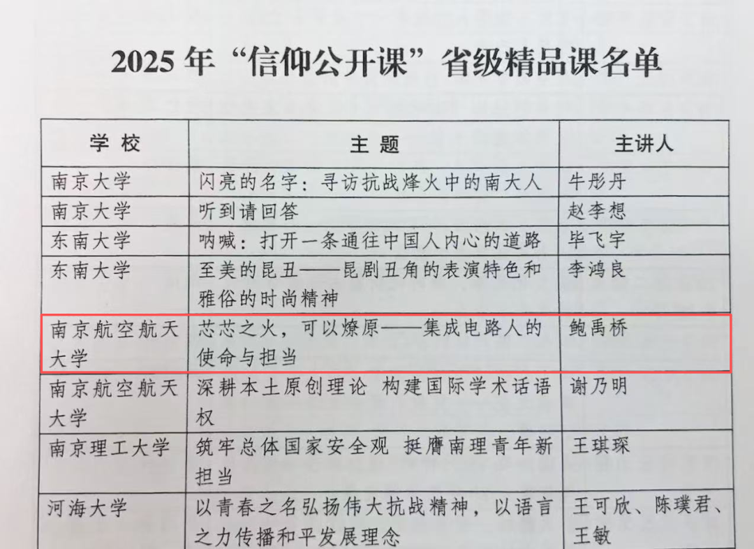近日,共青团江苏省委发布《关于公布2025年“信仰公开课”省级精品课评选结果的通知》。经高校推荐、团省委评选,我院2023级硕士研究生鲍禹桥“芯芯之火,可以燎原——集成电路人的使命与担当”主题课程入选省级精品课。该评选旨在推动全省高校共青团充分发挥在高校学生思想政治工作中的主力军作用,教育引导高校团员青年坚定不移听党话、跟党走,争做有理想、敢担当、能吃苦、肯奋斗的新时代好青年。